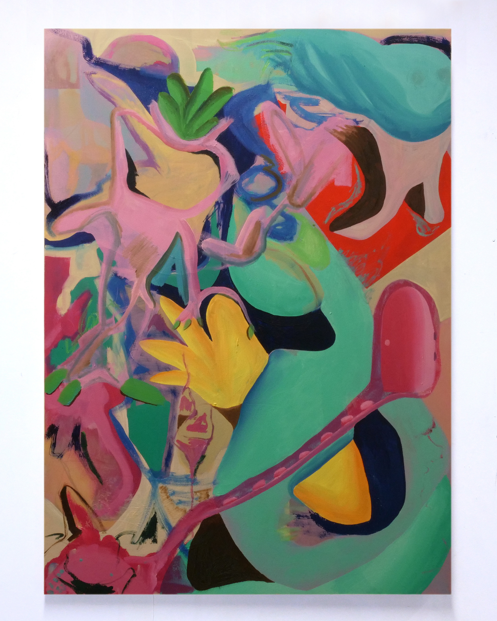 Hug from a Genie, Acrylic & Oil on Calico, 45 x 30cm, 2024